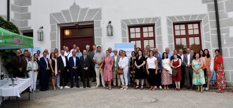 Sonnenschein, das Vöhlinschloss in Illertissen als wunderbares Ambiente, gute Gespräche der rund 50 Gäste sowie Landrat Thorsten Freudenberger und Bayerns Gesundheits- und Pflegeminister Klaus Holetschek als Redner – der zweite Sommerempfang der Gesundheitsregionplus Landkreis Neu-Ulm erfüllte alle Erwartungen. Marc Löchner, Geschäftsstellenleiter der Gesundheitsregionplus Landkreis Neu-Ulm, zeigte sich mit dem Verlauf des Abends sehr zufrieden, der mit der Besichtigung des Bayerischen Bienenmuseums und des Museums Illertissen (beide im Vöhlinschloss) abgerundet wurde. Darüber hinaus bot der Empfang die Möglichkeit zu einem Austausch und bereits bestehende Kontakte auszubauen.